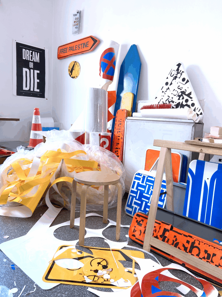The clocks are built entirely from what others leave behind: reflective offcuts picked up from a company that makes traffic signs, and clock systems salvaged from the secondhand section of IKEA. Instead of ending up in the trash, these discarded materials form the starting point for something new.
